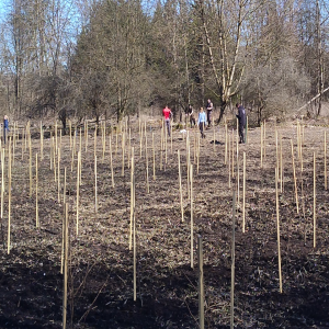 An der damaligen Aktion beteiligten sich sieben Mitglieder der Fachschaft. Für die heutige Pflanzung kamen vier weitere Studierende hinzu. Insgesamt konnte nun die 10-fach Menge, nämlich 500 Schwarzerlen, eingepflanzt werden.